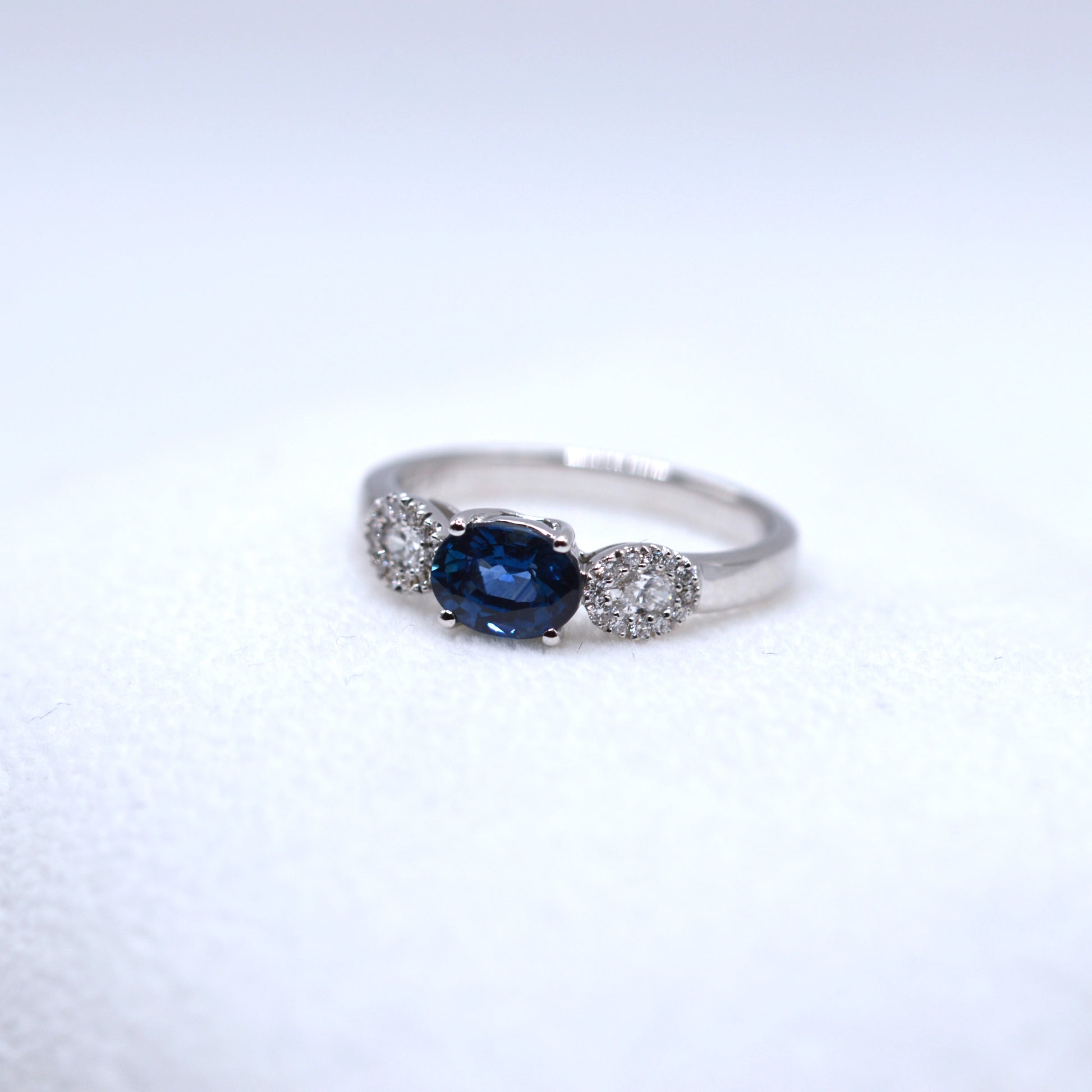 Anelli in oro bianco 18Kt con diamanti e pietre colore.