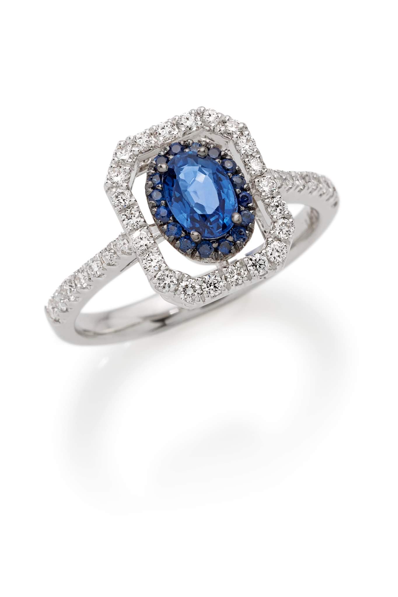 Anello in oro bianco 18Kt, diamanti e pietra colore a scelta.