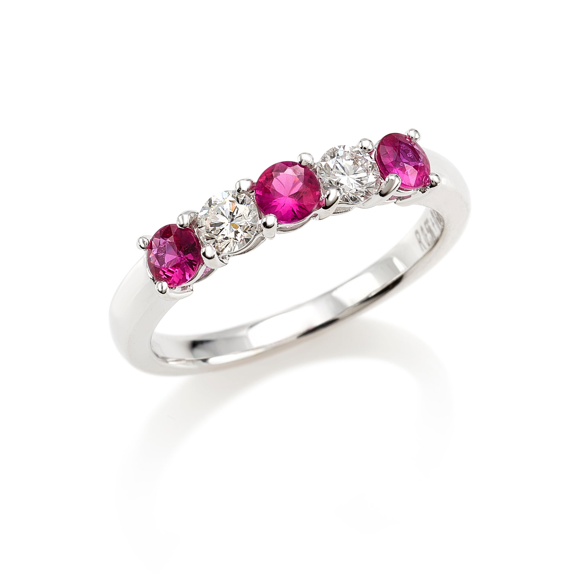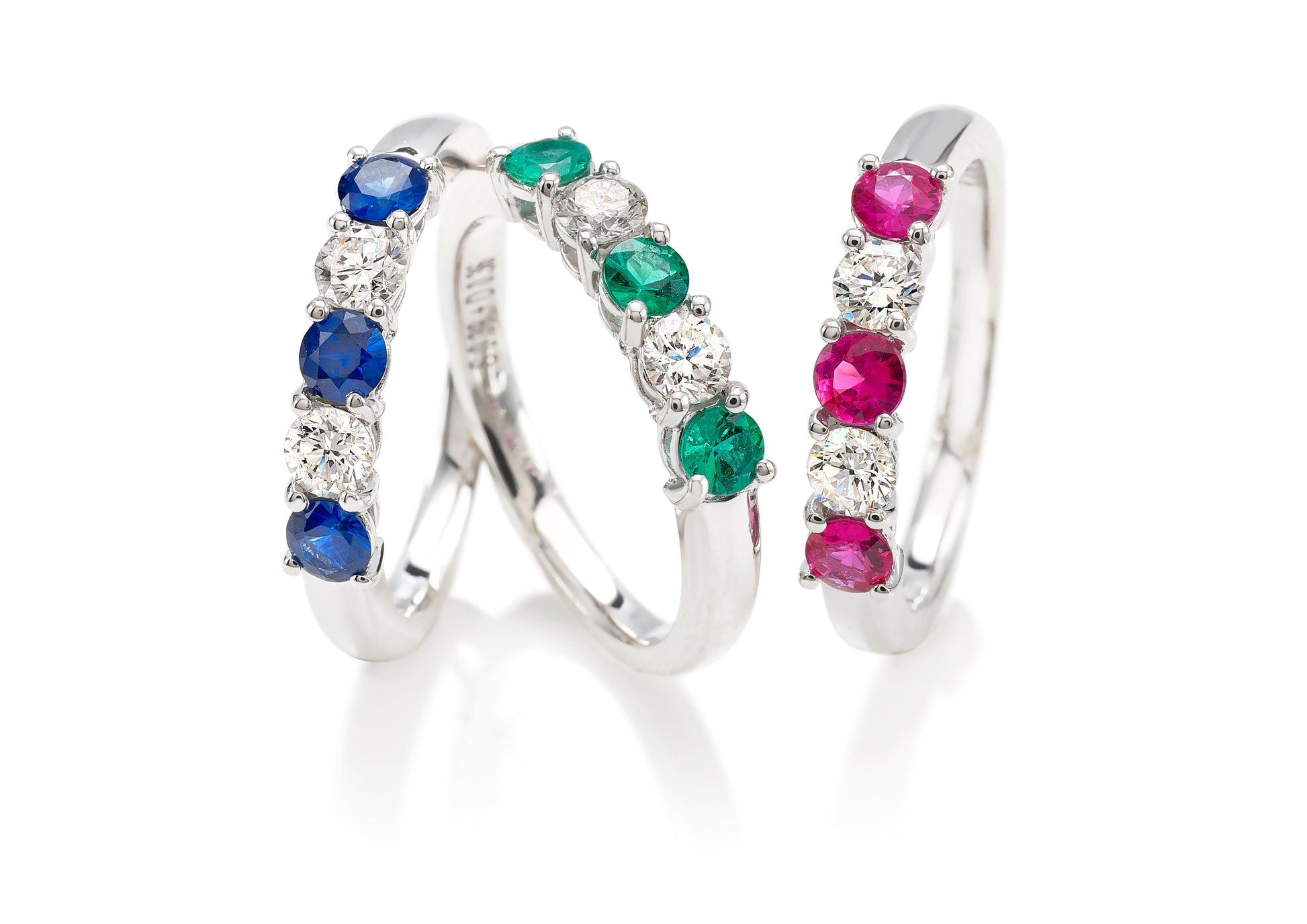 Anello in oro bianco 18Kt, diamanti e pietra colore a scelta.
