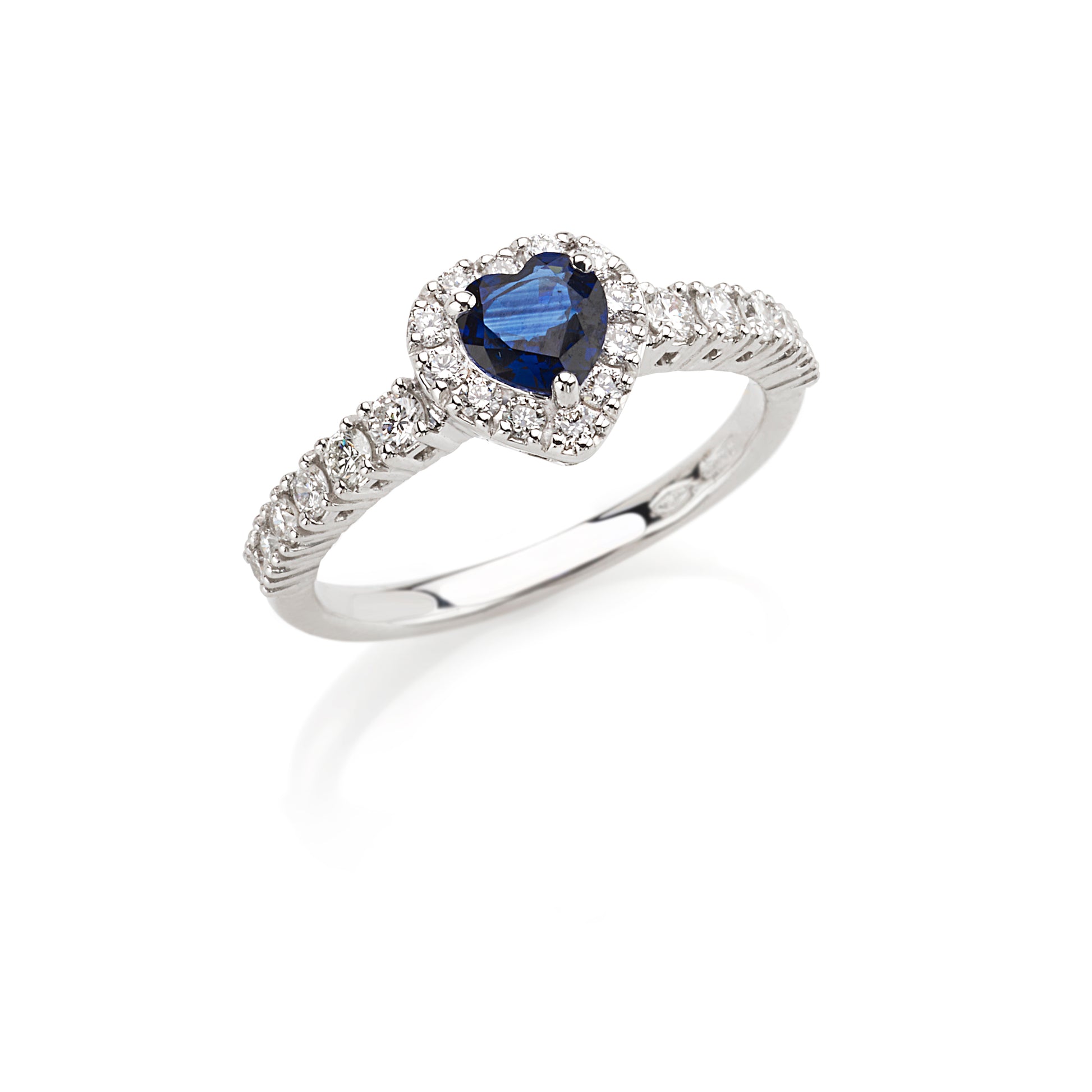 Anello in oro bianco 18Kt, diamanti e pietra colore a scelta.