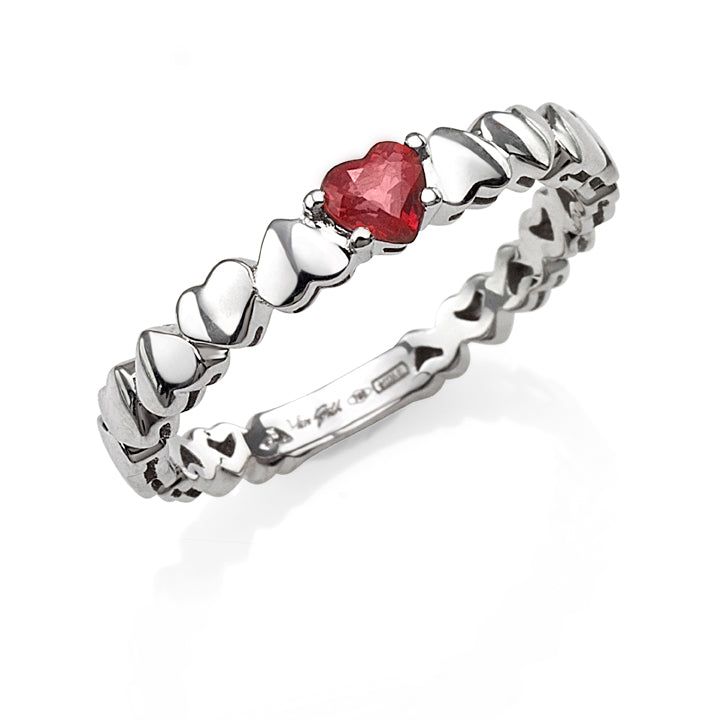 Anello cuore in oro bianco 18Kt e pietra colore a scelta.