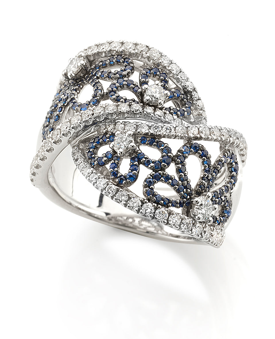 Anello in oro bianco 18Kt, diamanti e pietra colore a scelta.