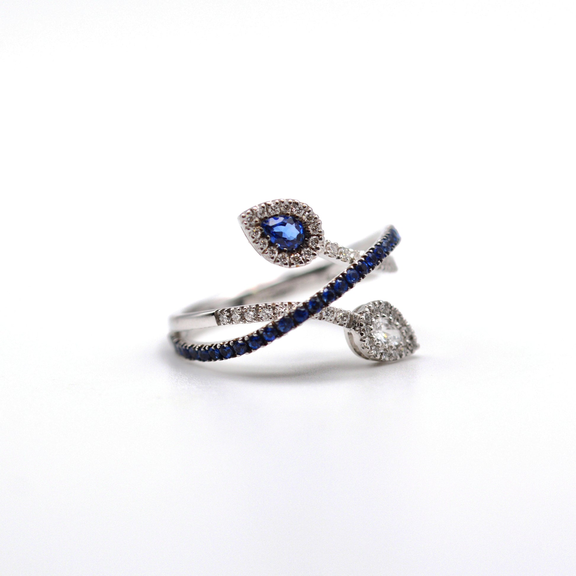 Anello in oro bianco 18Kt, diamanti e pietra colore a scelta.