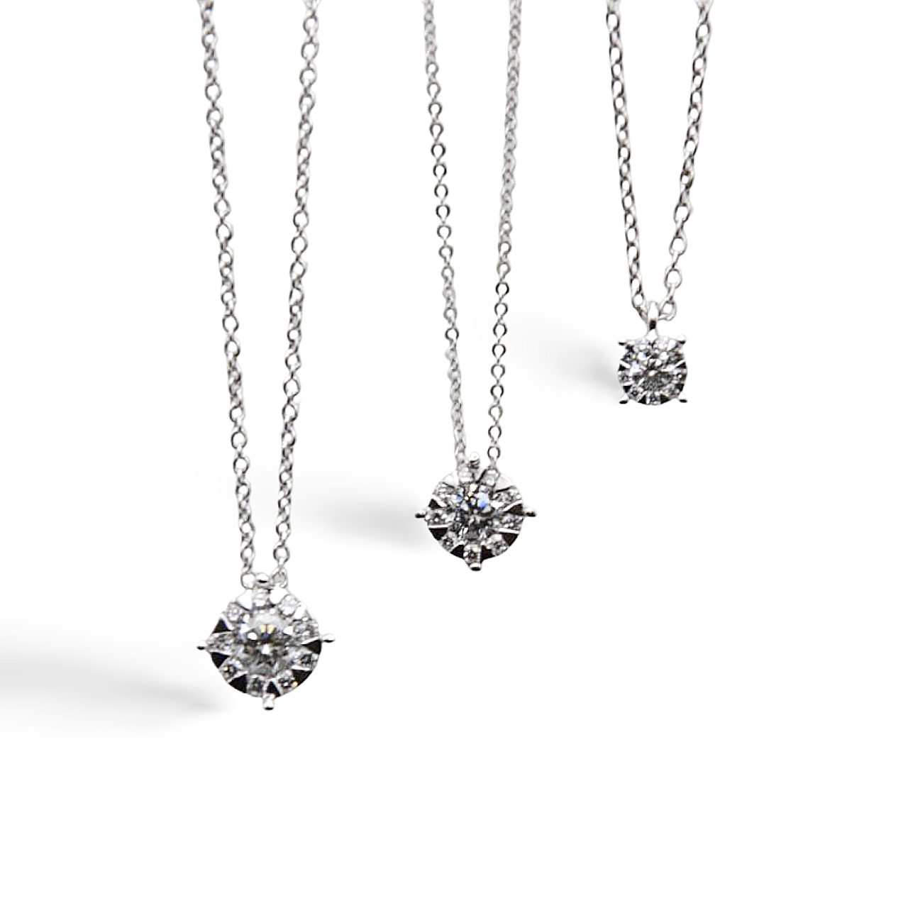 Collane in oro bianco 18Kt e diamanti.