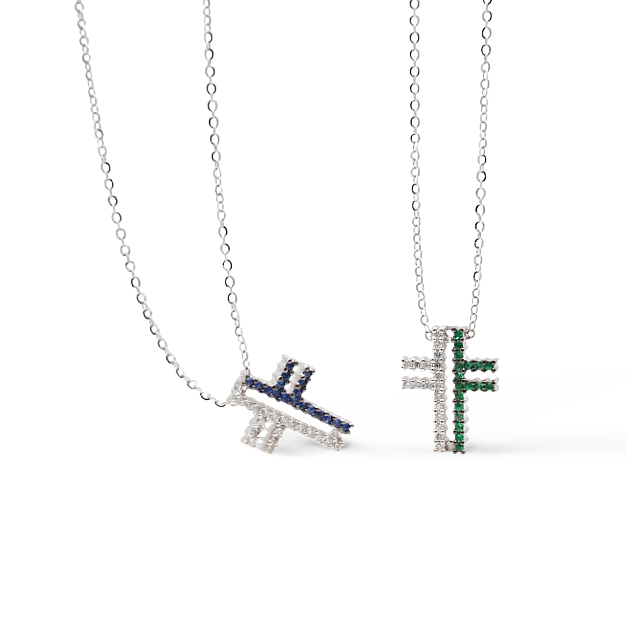 Collana in oro bianco 18Kt, diamanti e pietra colore a scelta.