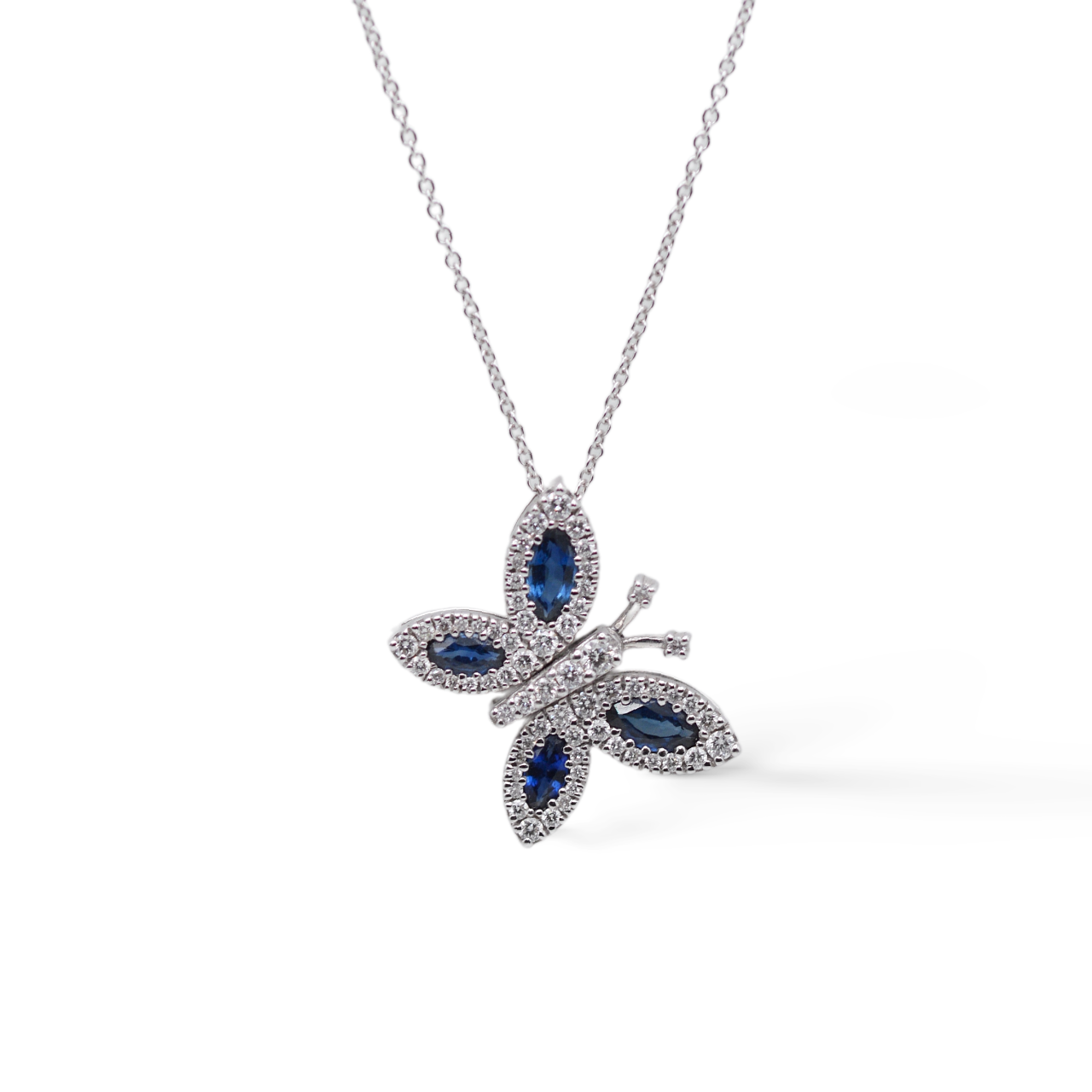 Collana in oro bianco 18Kt, diamanti e zaffiro.