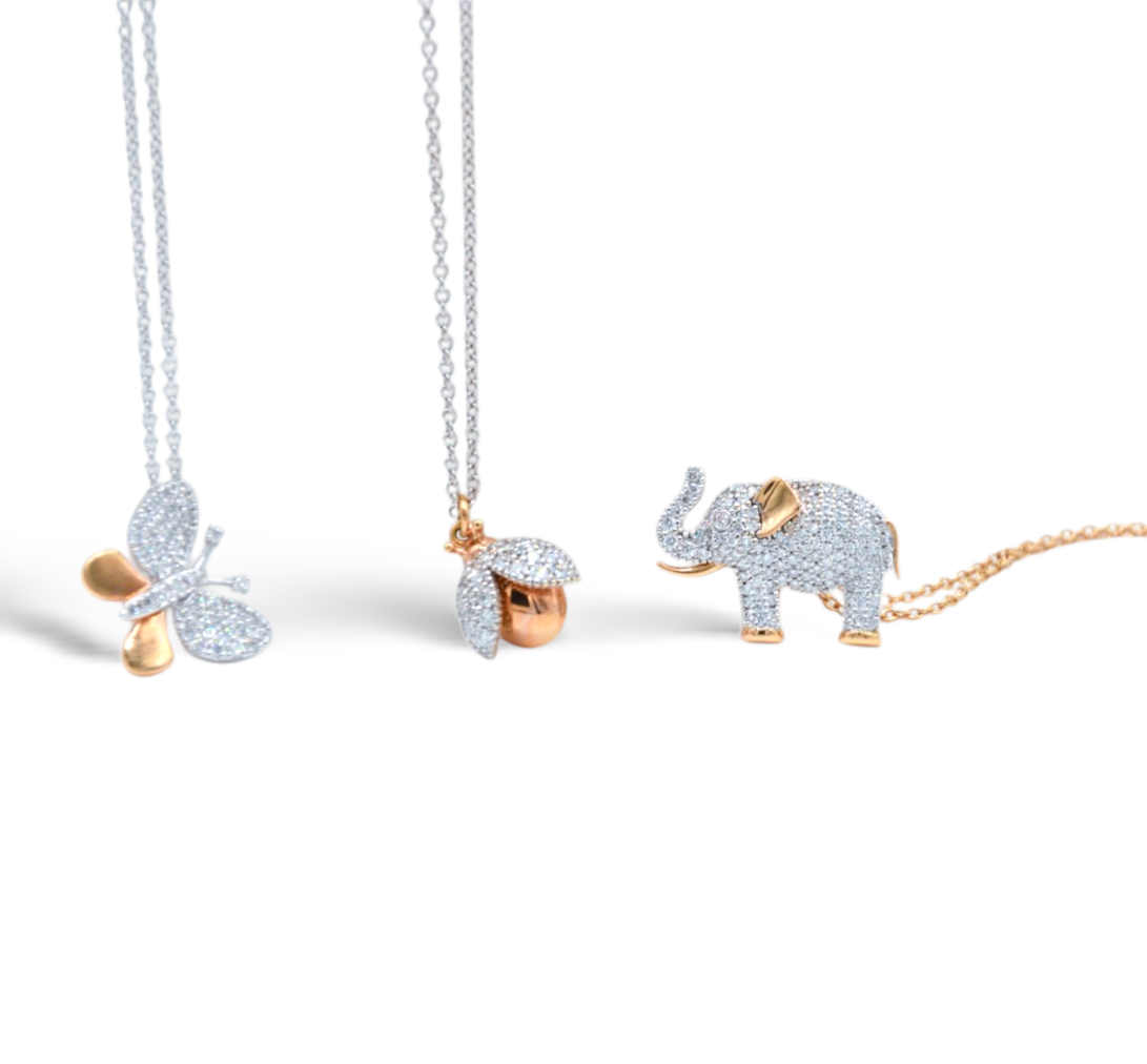 Collane in oro bianco e rosa 18Kt e diamanti.