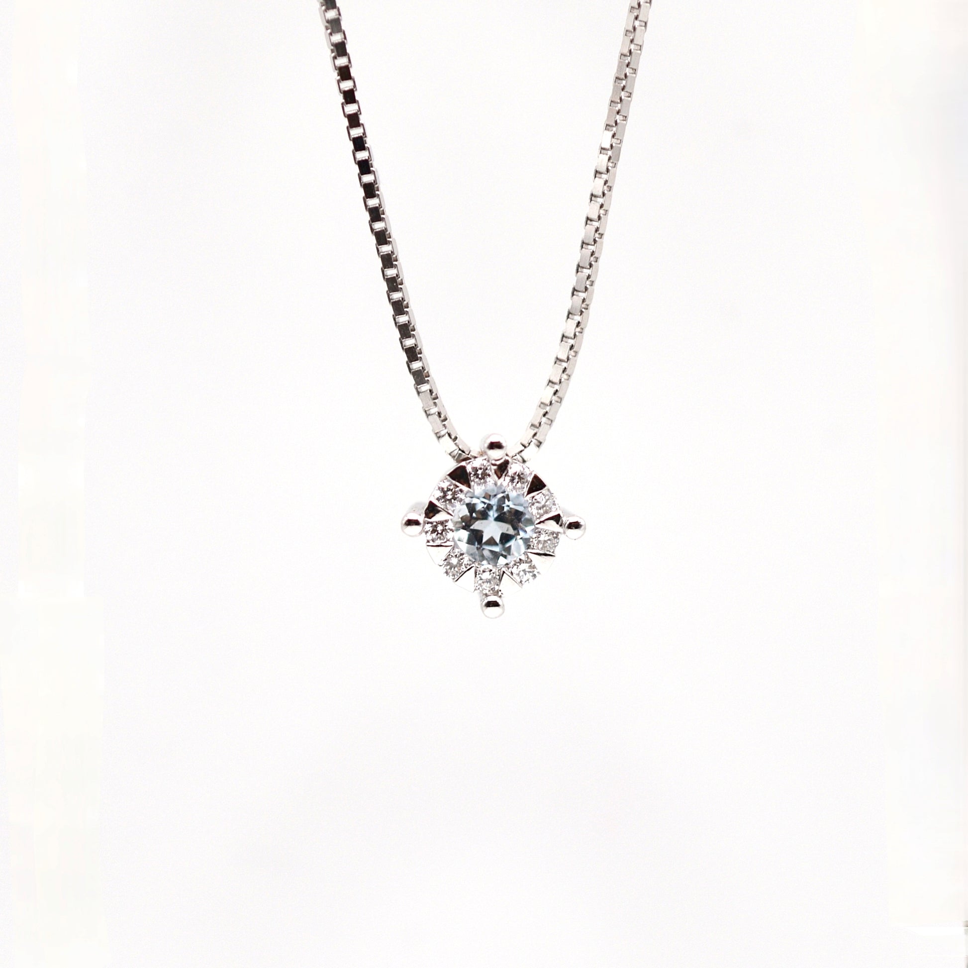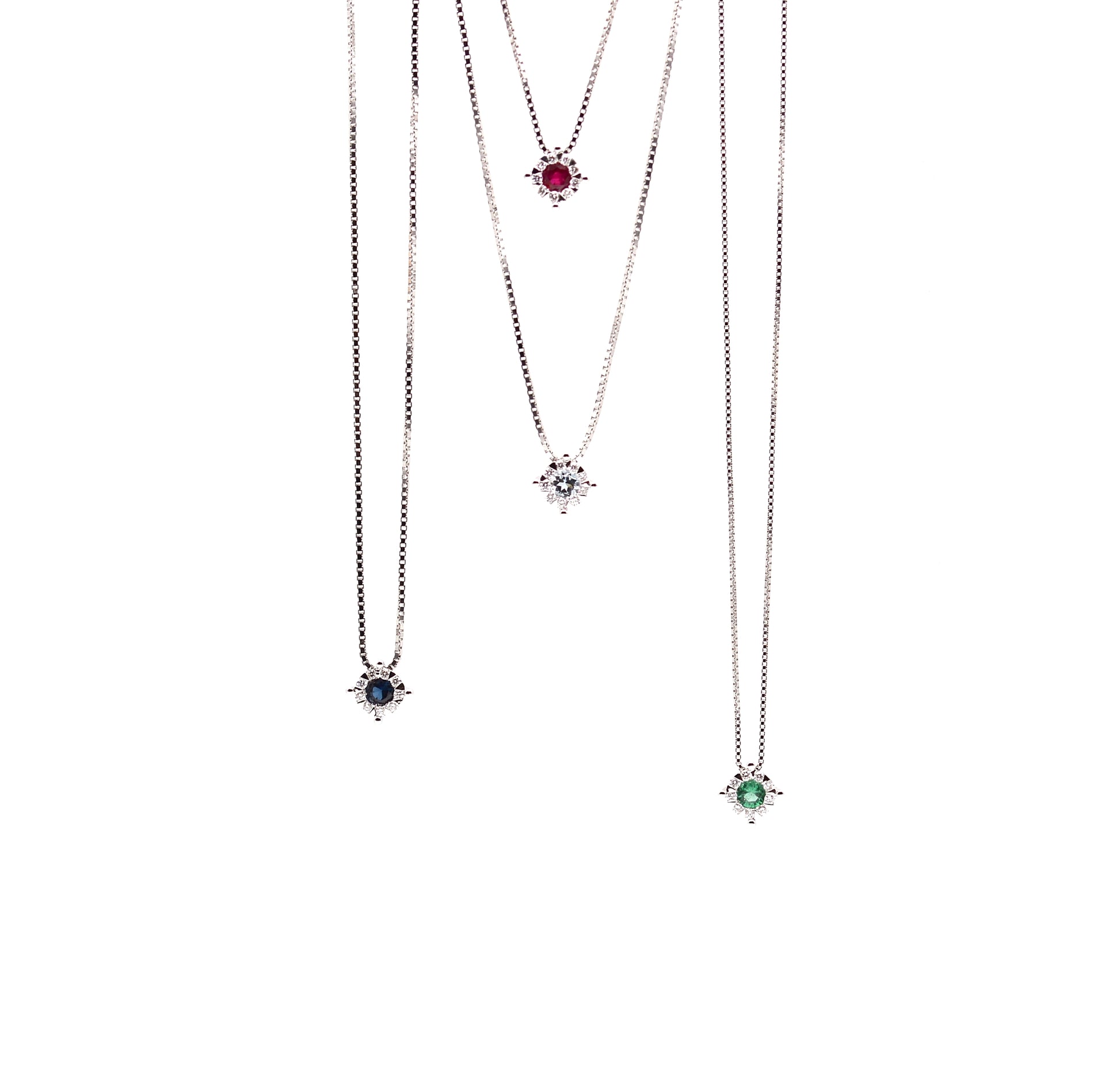 Collana Ison in oro bianco 18Kt, diamanti e pietra colore.