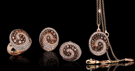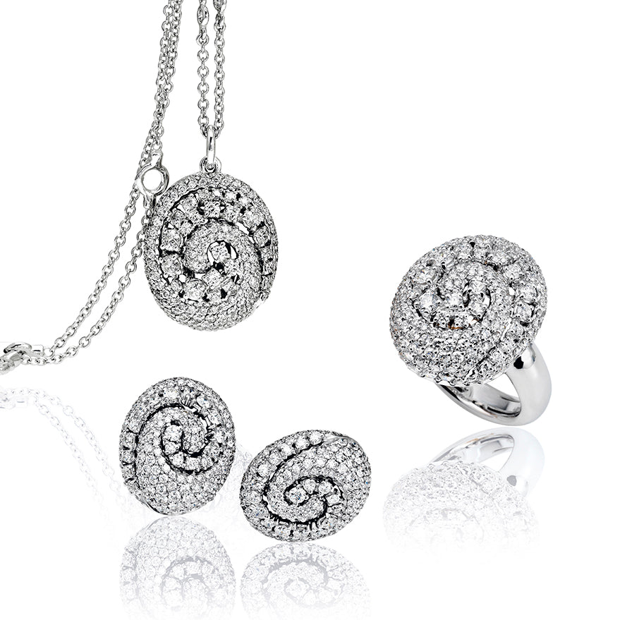 Completo in oro bianco 18Kt e diamanti. Disponibile anche in marrone.