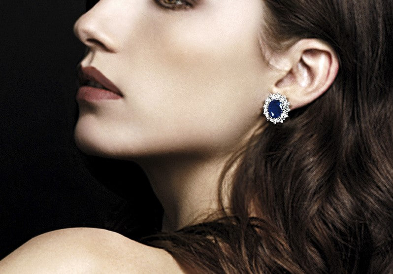 Orecchini in oro bianco 18Kt, diamanti e zaffiro.