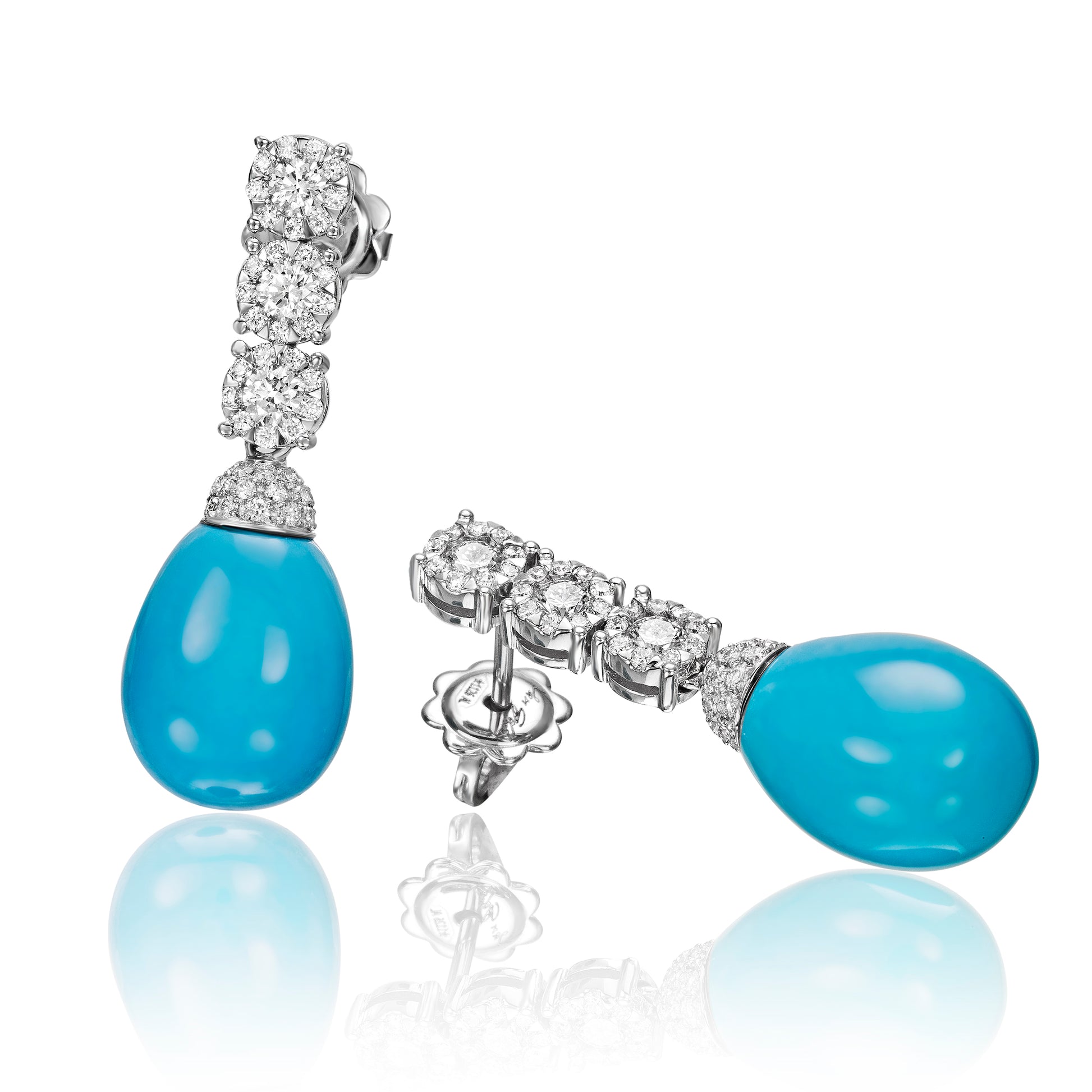Orecchini in oro bianco 18Kt, diamanti e turchese.