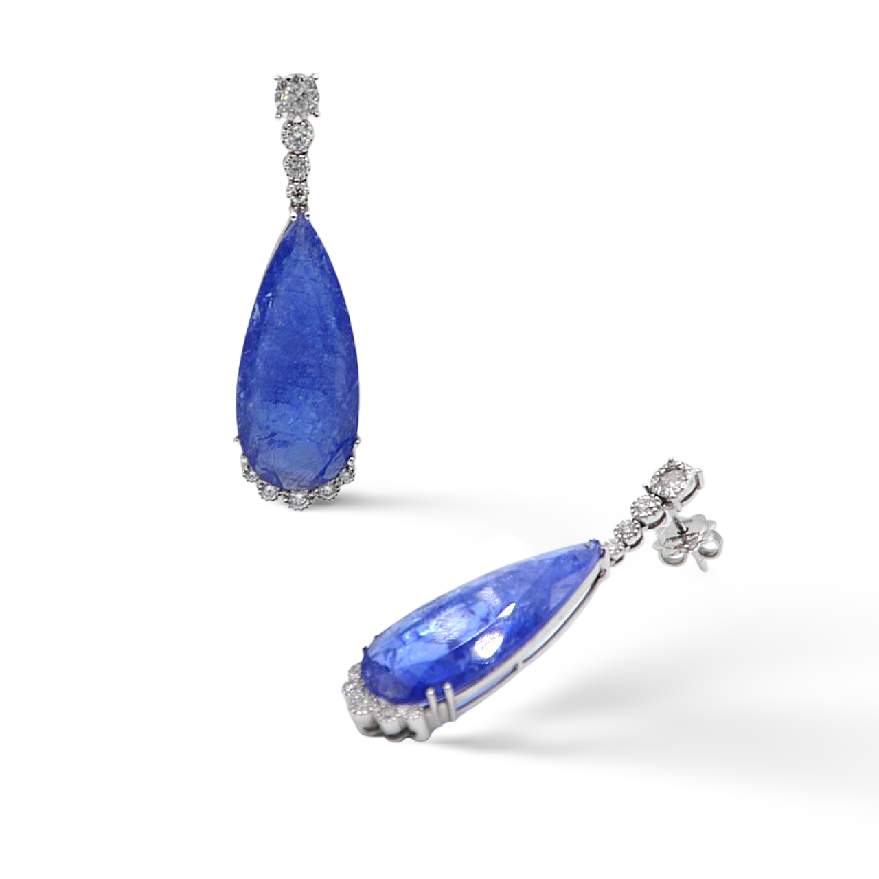 Orecchini in oro bianco 18Kt, diamanti e tanzanite.
