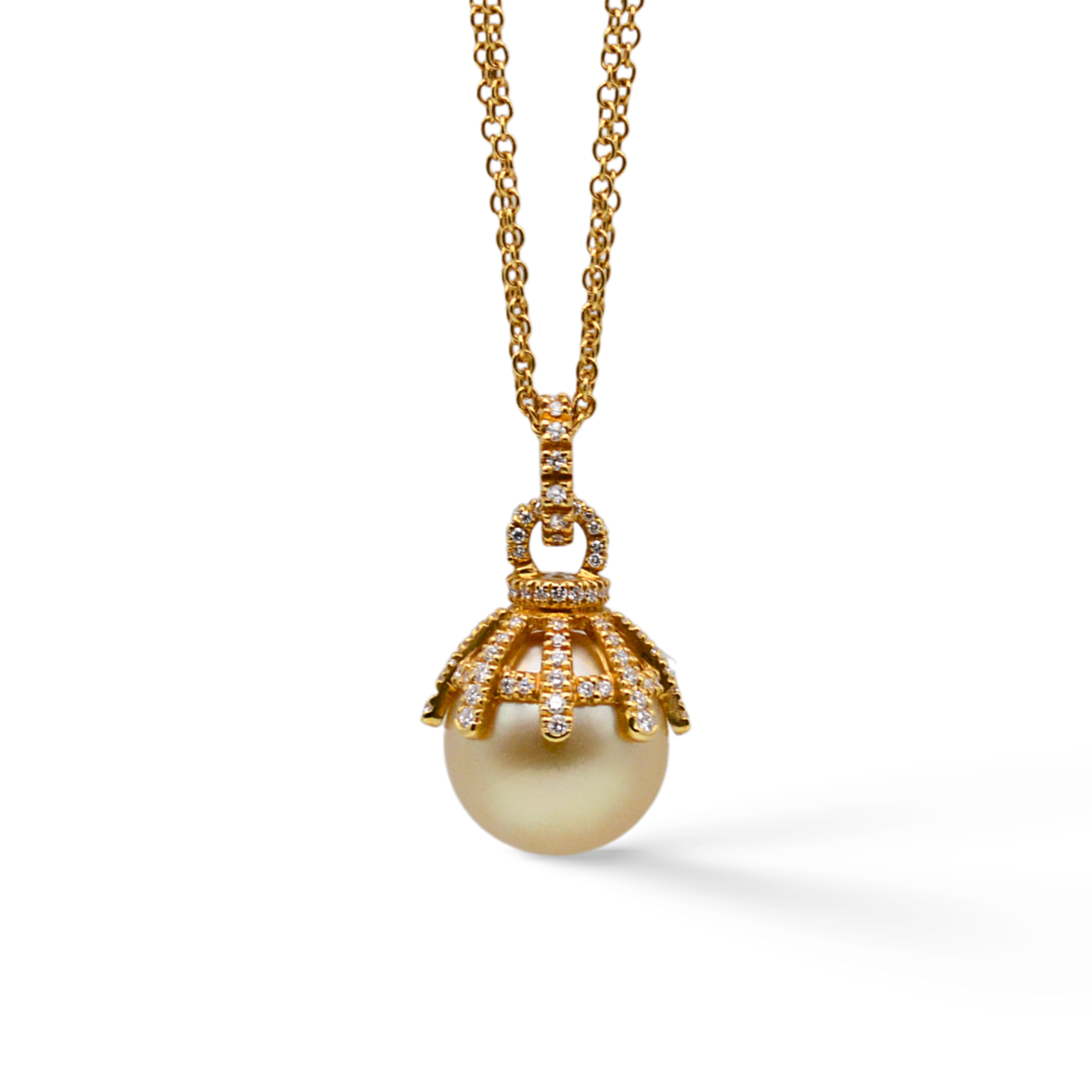 Collana in oro giallo 18Kt, diamanti e perla gialla.