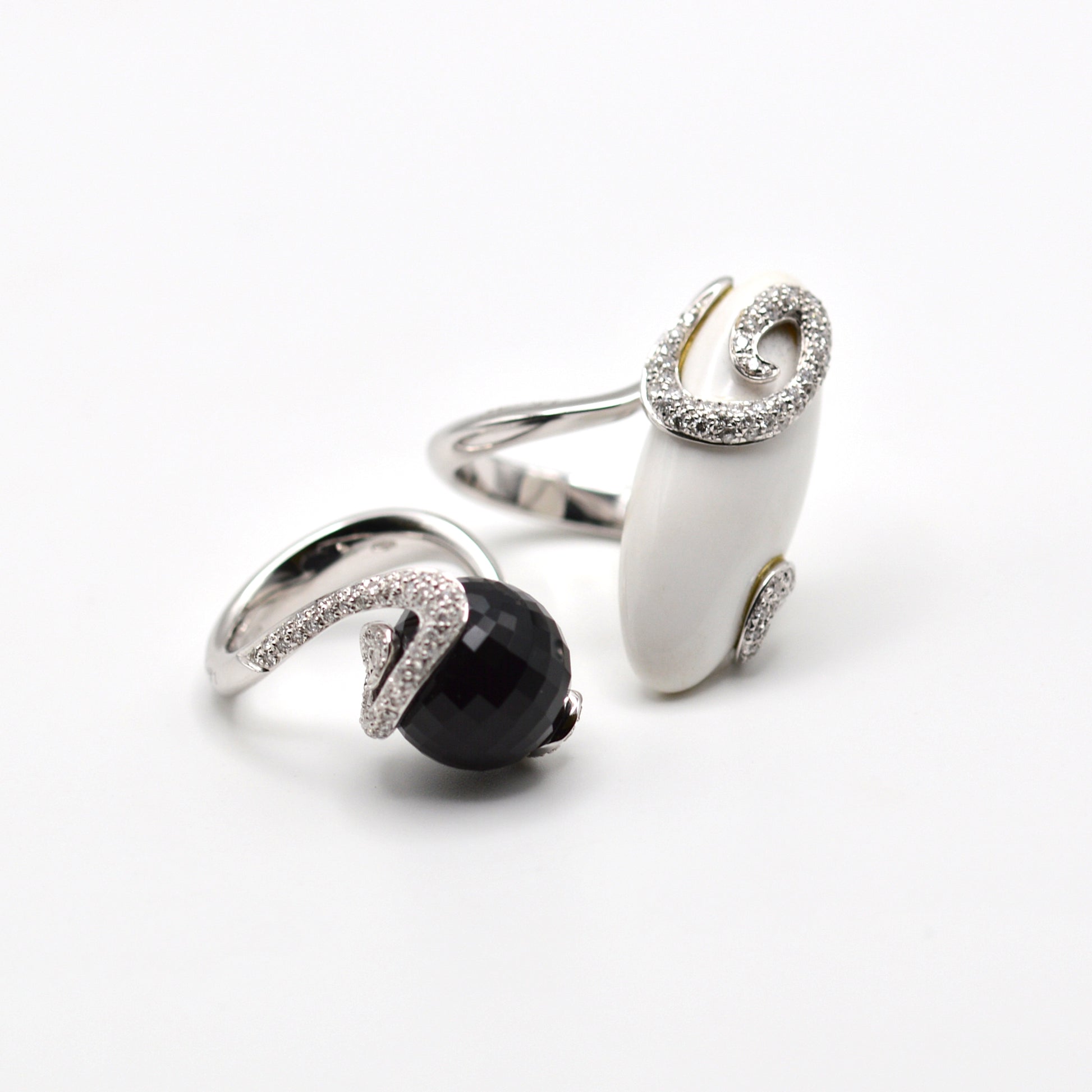 Anelli in oro bianco 18Kt, diamanti e pietre dure.