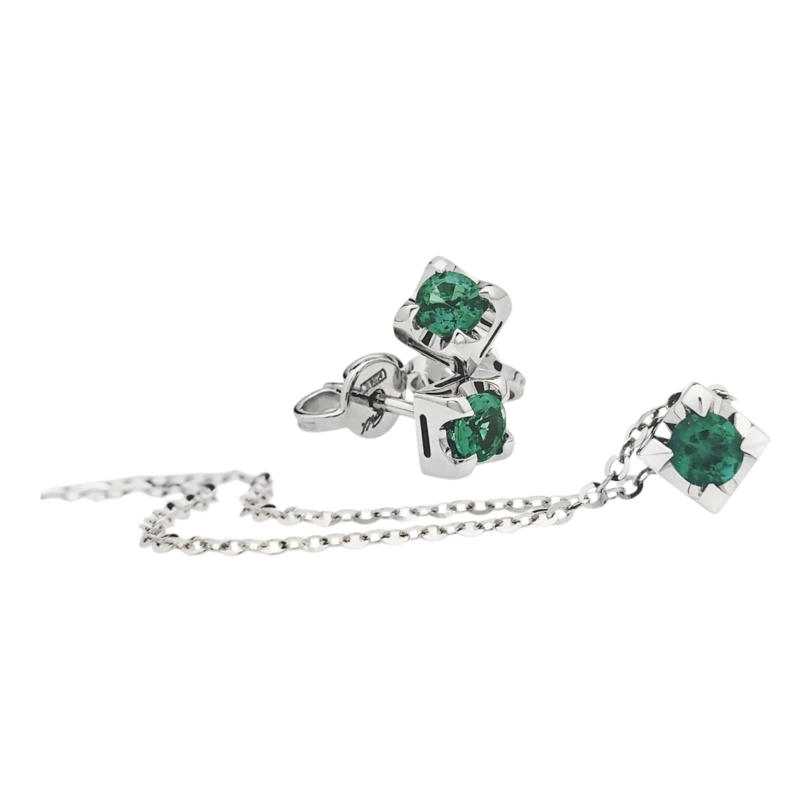 Collana e orecchini in oro bianco 18Kt e pietra colore a scelta.