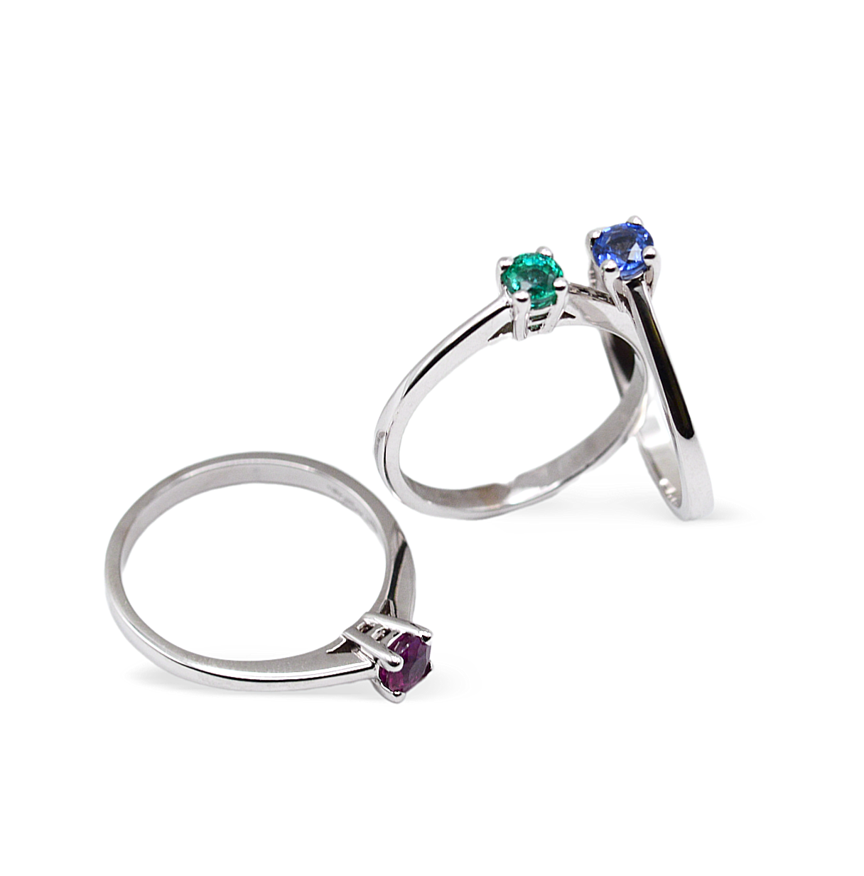 Anello in oro bianco 18Kt e pietra colore a scelta